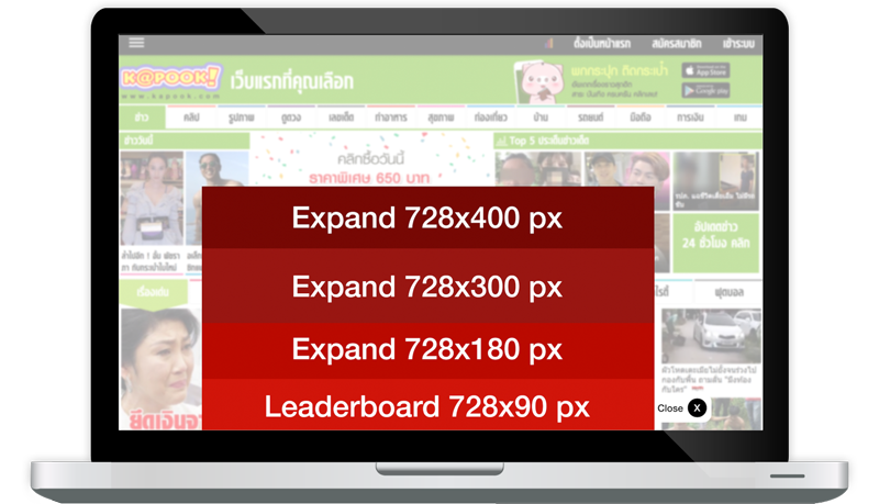 โฆษณาที่มีความโดดเด่นในเรื่อง ขนาดของแบนเนอร์ ตำแหน่งที่แสดงผล รวมทั้งสามารถเลือกรูปแบบโฆษณาได้ทั้ง วิดีโอ, ภาพเคลื่อนไหวแบบอินเทอร์แอ็คทีฟ