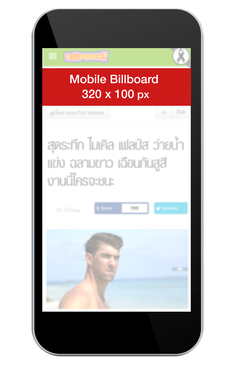 ตำแหน่งโฆษณาที่อยู่ใต้บริเวณข่าว Section เรื่องฮิต มีขนาดใหญ่เด่นสะดุดตากลางหน้าเว็บ กว้าง 970 x 250 pixels