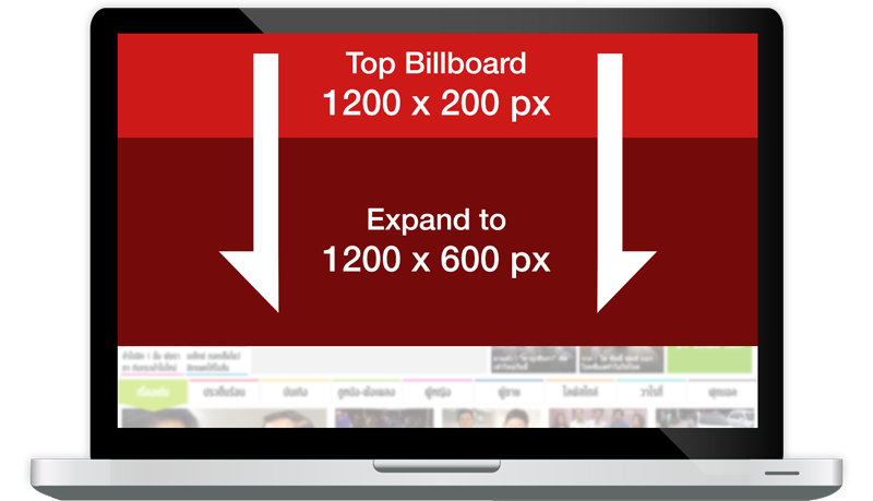 ตำแหน่งโฆษณาที่มีขนาดใหญ่ที่สุดบนเว็บไซต์ อยู่ด้านบนสุด สะดุดตาทันทีที่เข้าหน้าเว็บไซต์ มีขนาด 1200 x 200 pixels สามารถขยายได้สูงสุดถึง 1200 x 600 pixels